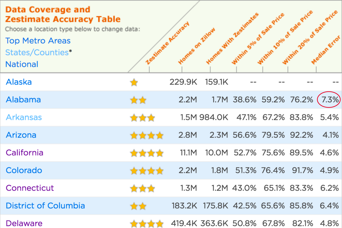 One statistic that is overlooked by many homeowners is that the accuracy of the Zestimates in their specific area can be drastically different than the national average.